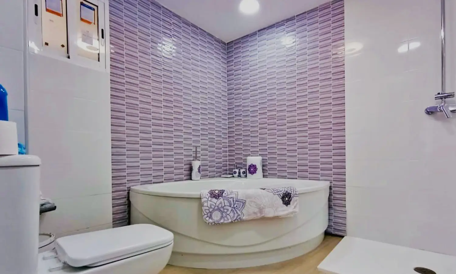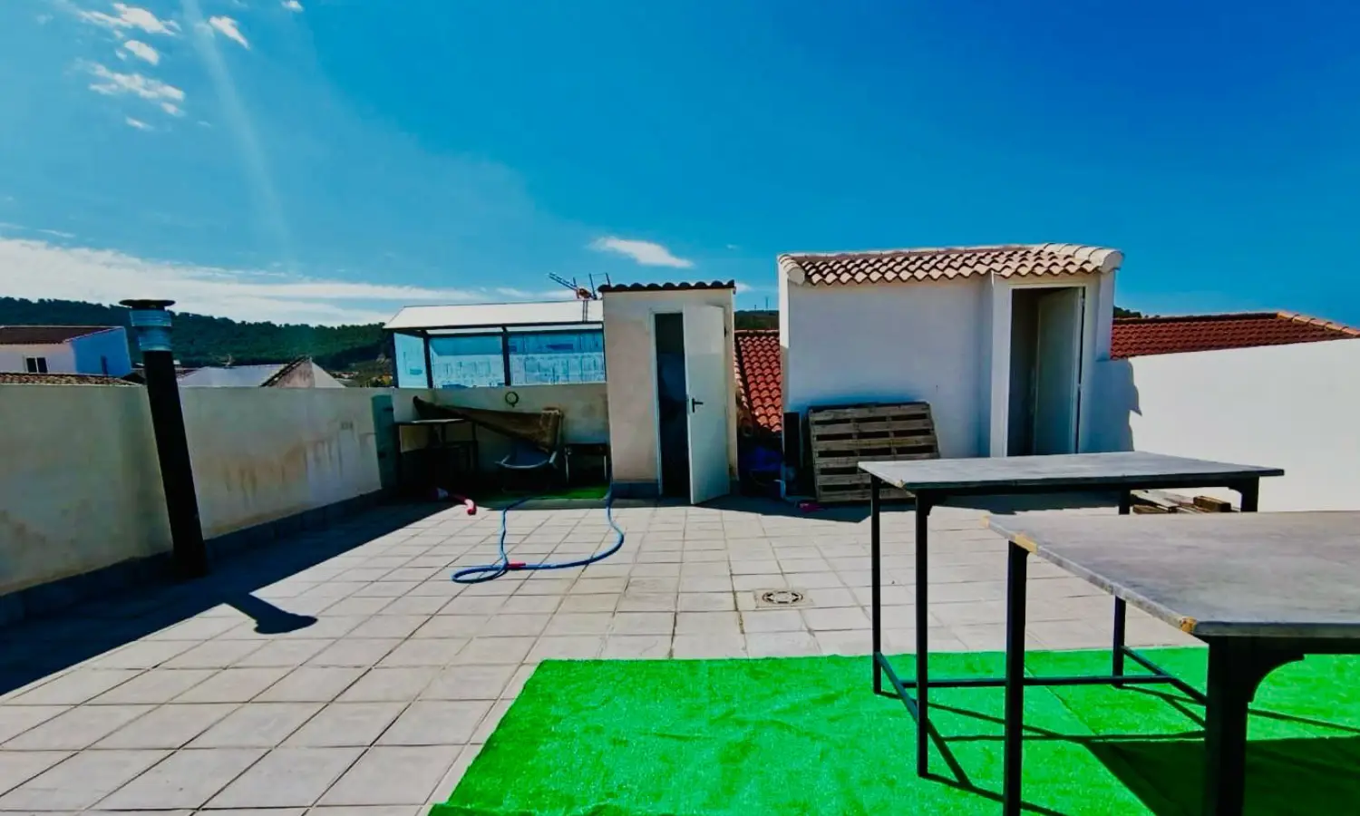 En la planta baja encontrarás una habitación y un baño con plato de ducha, ideal para mayor comodidad. La primera planta alberga dos habitaciones adicionales; una de ellas con un lujoso baño en suite que incluye bañera de hidromasaje y plato de ducha. Además, disfruta de un espectacular solárium de 80 metros cuadrados, perfecto para relajarte al aire libre.