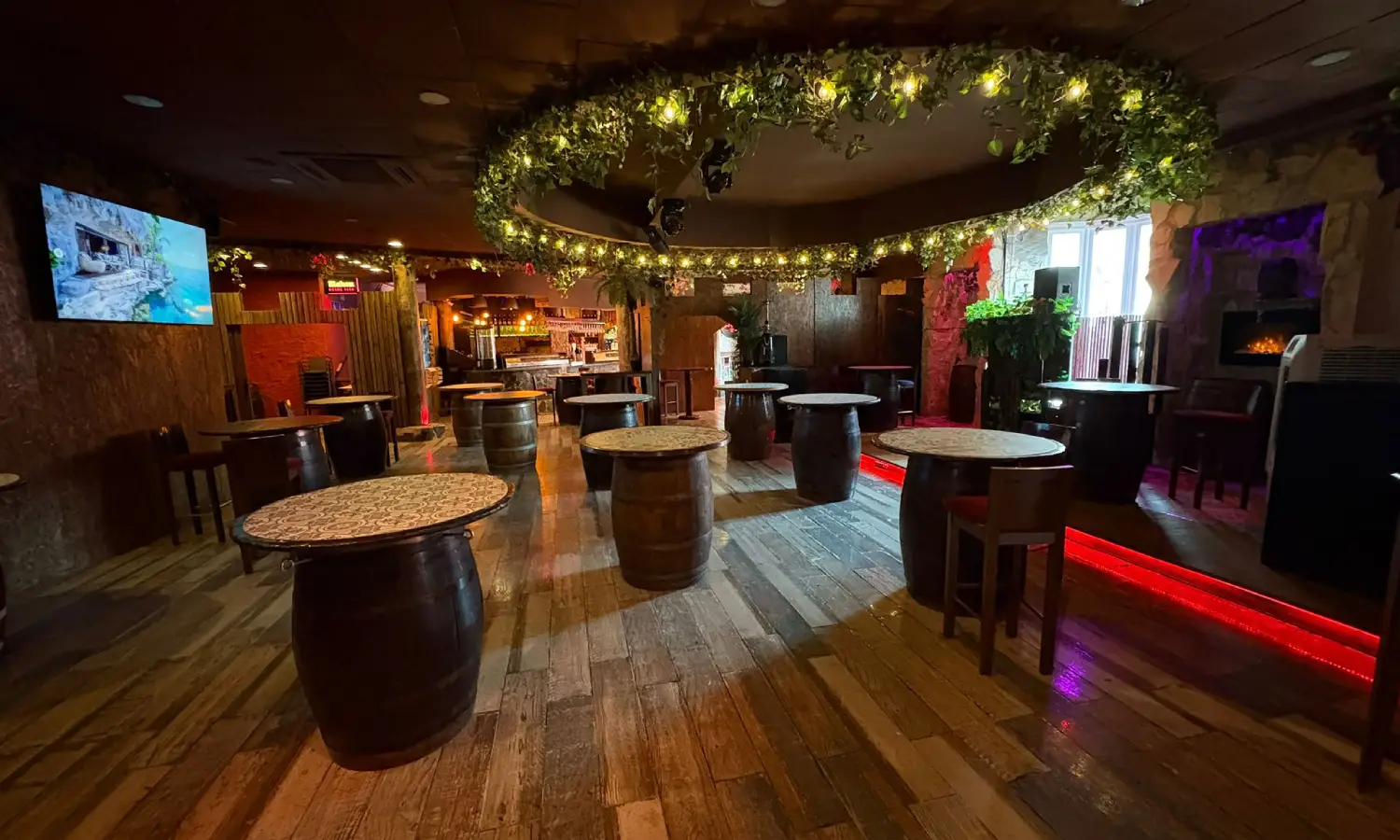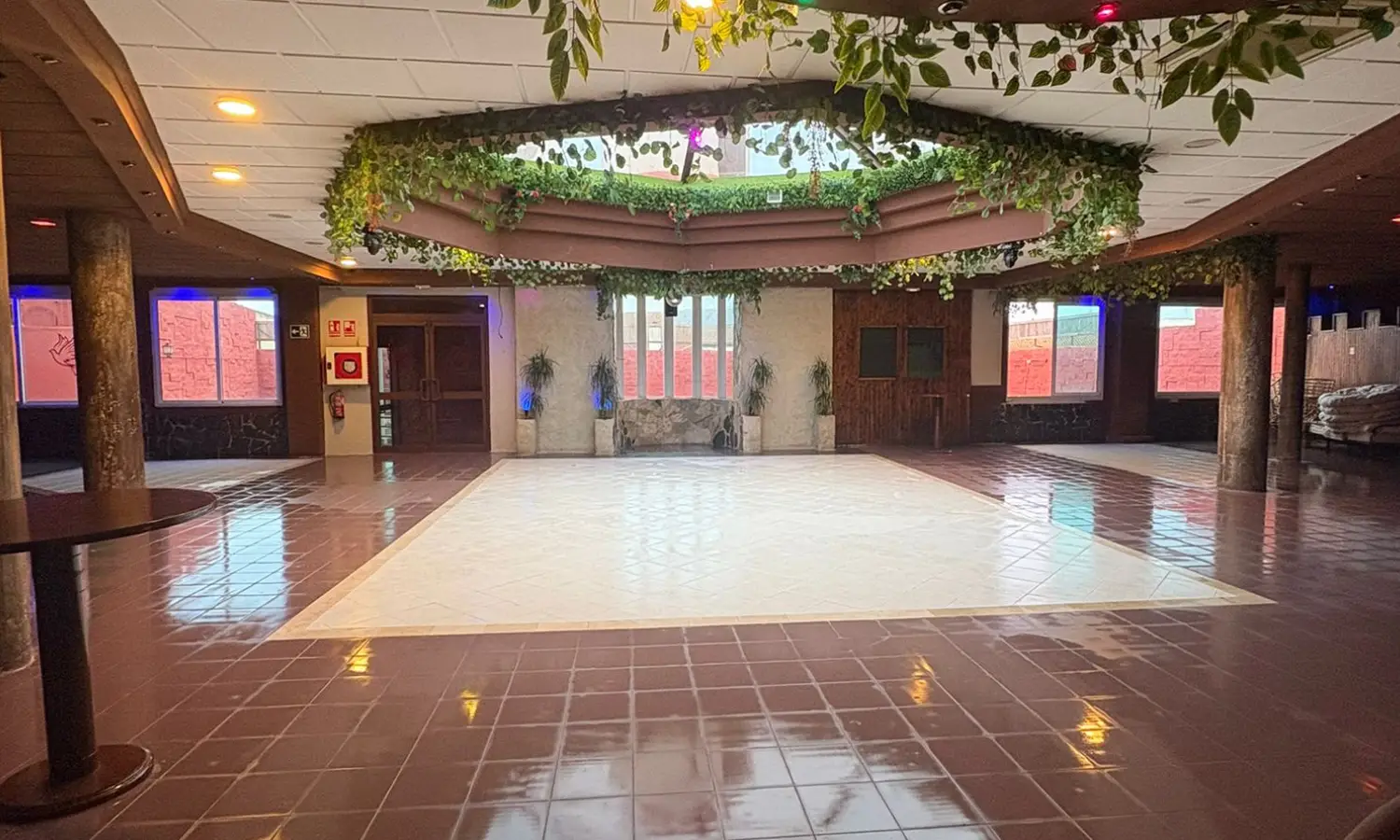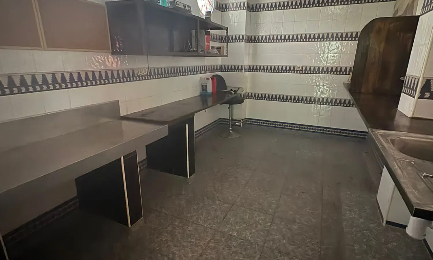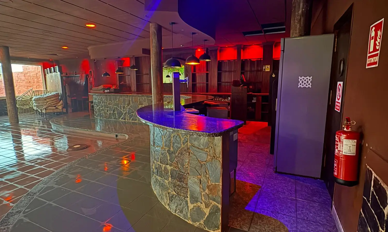 El espacio está habilitado como discoteca, con una cocina equipada y cuartos de baño reformados, además de un almacén y zona de servicio.