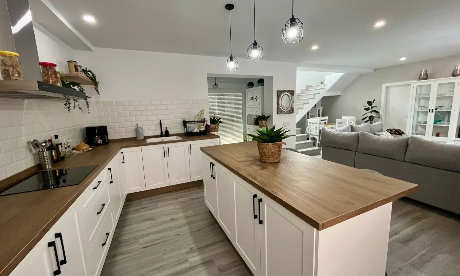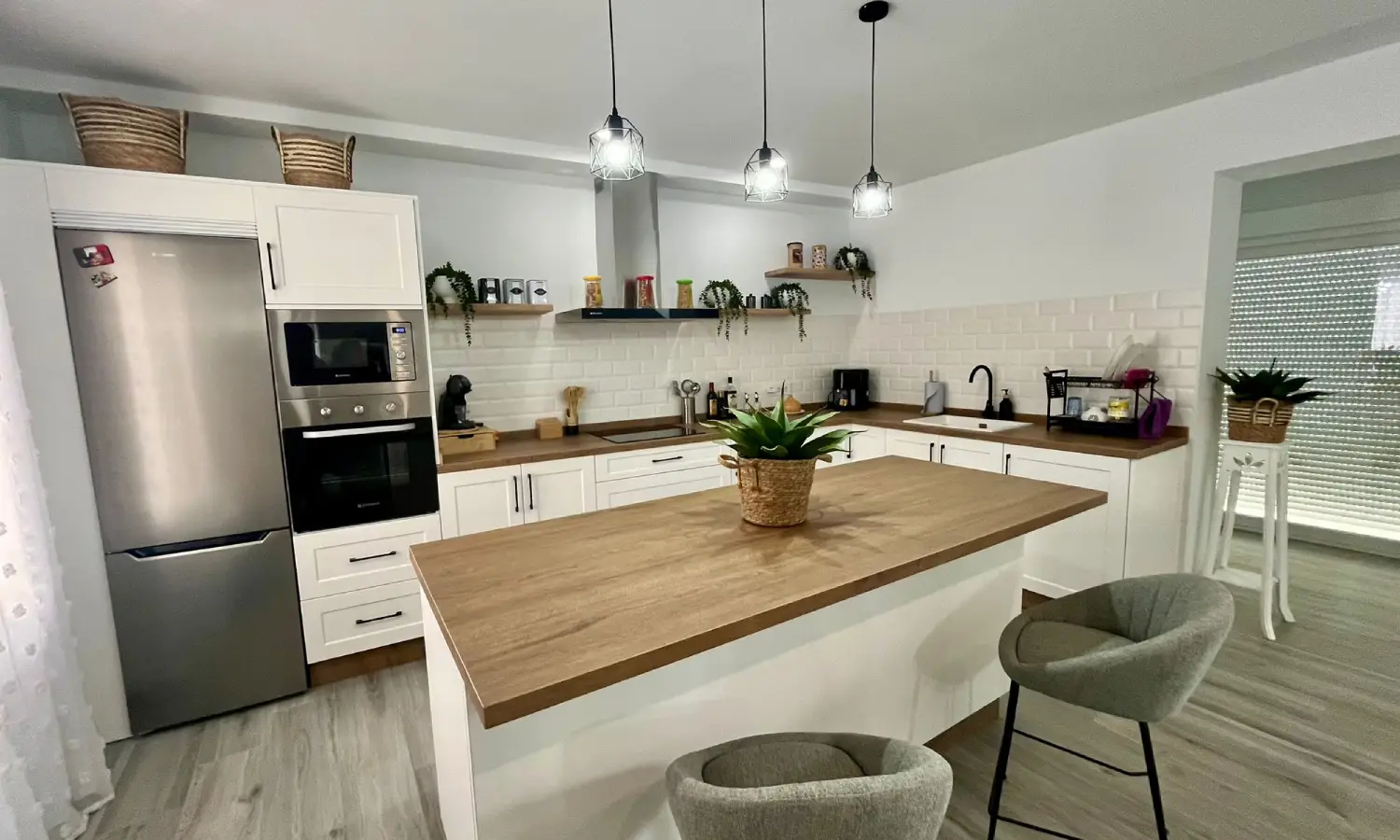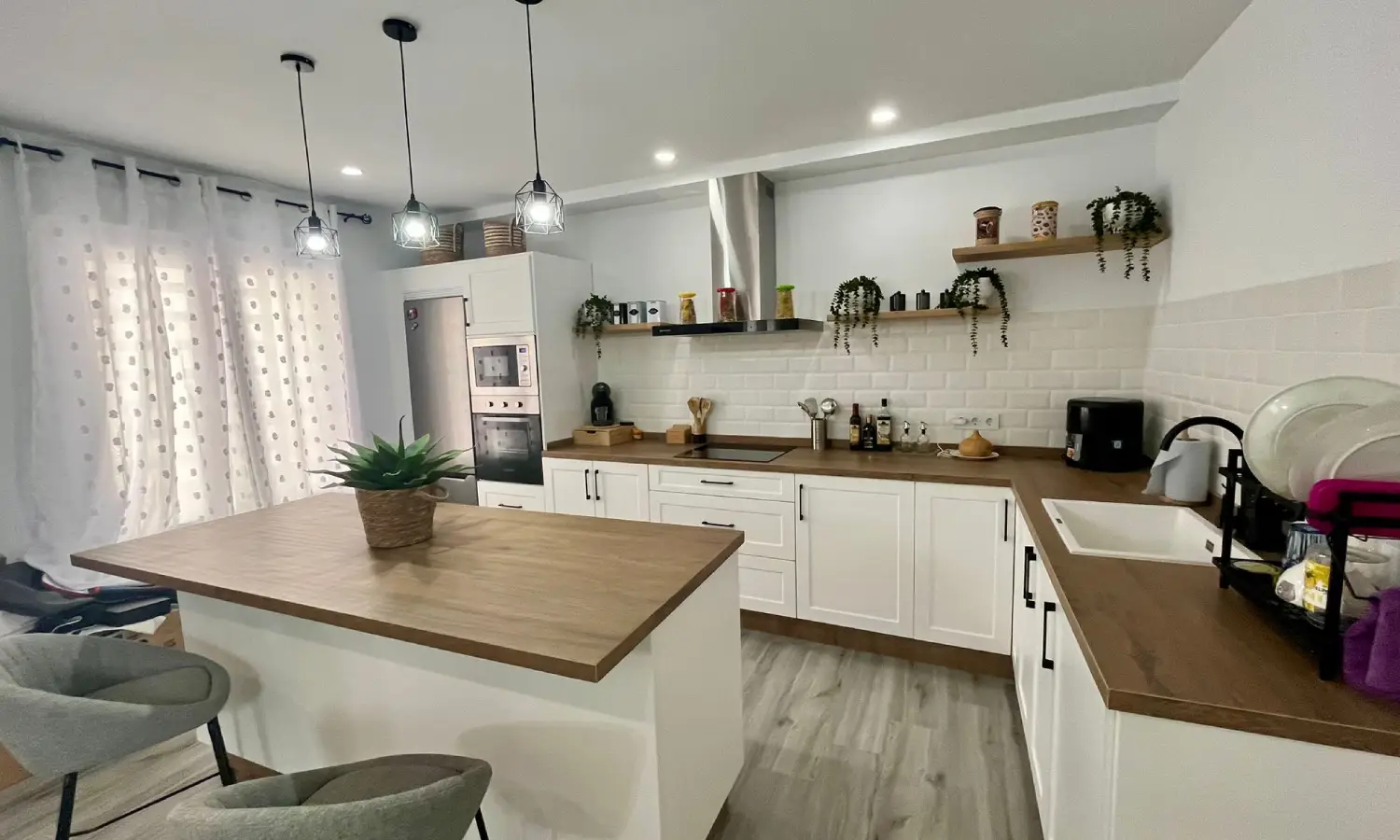 En la planta baja, un amplio salón comedor abierto se conecta con una cocina en isla, totalmente amueblada y equipada con electrodomésticos de alta gama, perfecta para los amantes de la gastronomía.