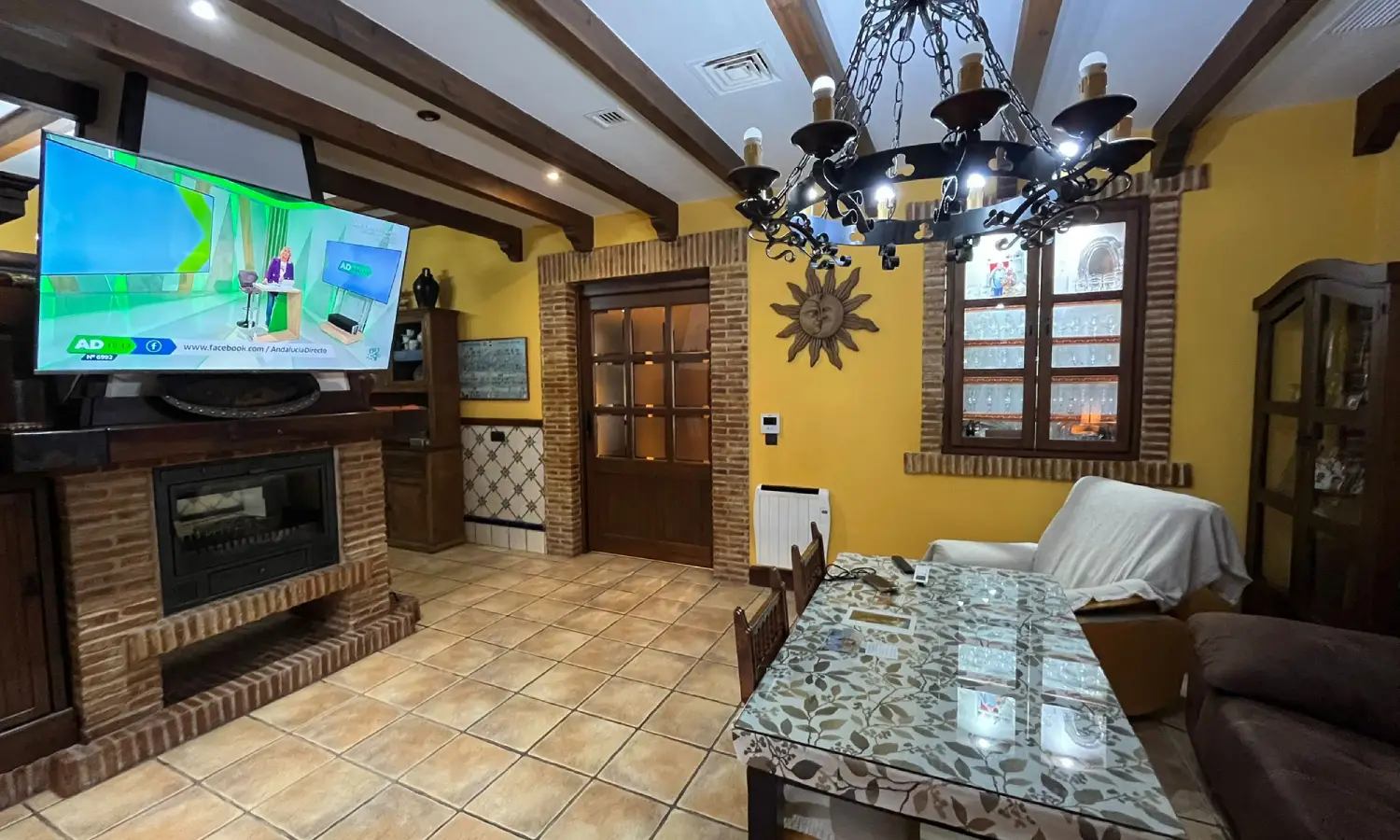 El salón comedor, con su acogedora chimenea, se convierte en el corazón del hogar, ideal para compartir con familia y amigos.