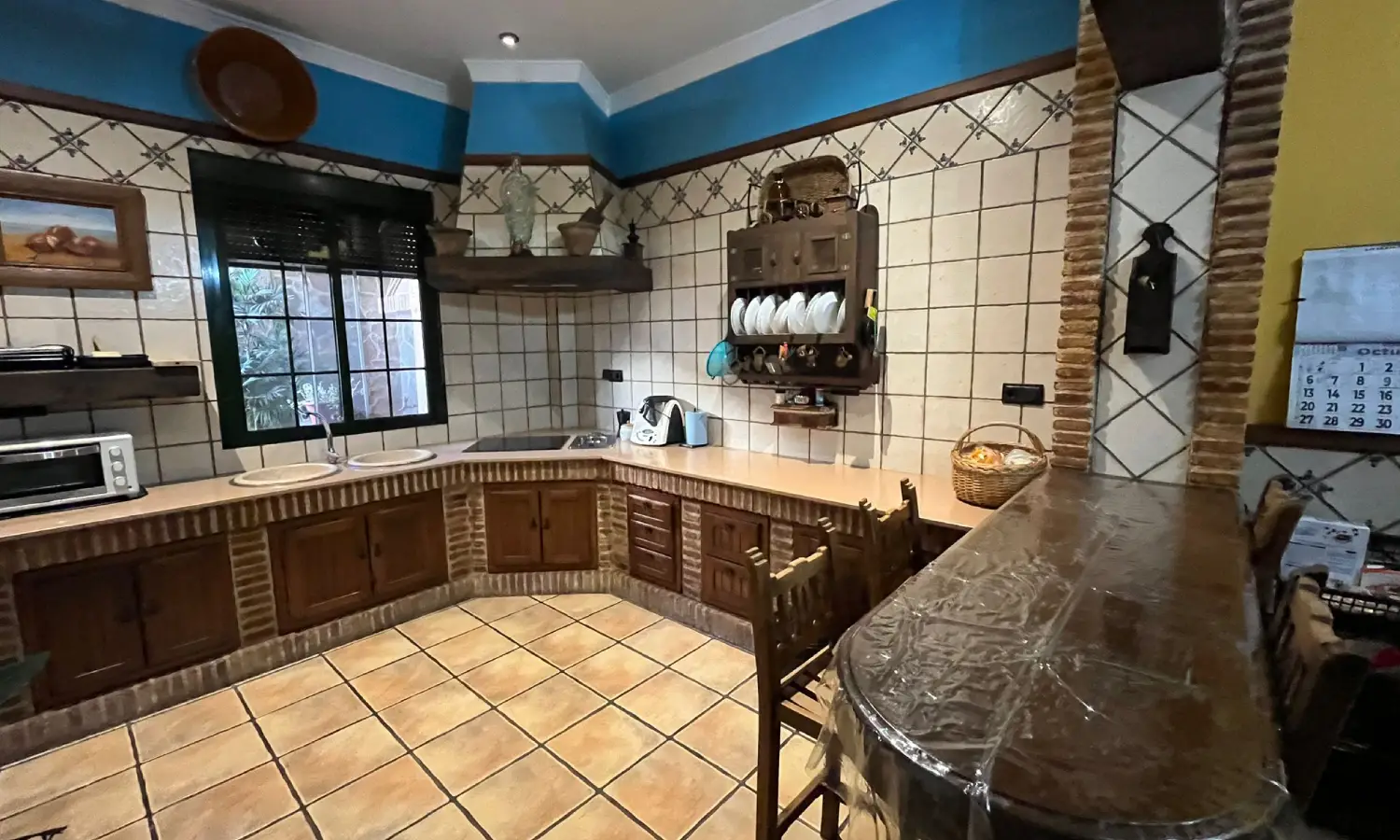 La cocina amueblada de madera, equipada con electrodomésticos de alta gama, te invita a disfrutar de momentos culinarios inolvidables.