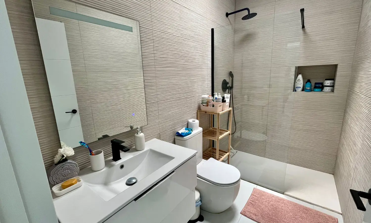 El cuarto de baño completo con plato de ducha añade un toque de comodidad a tu día a día.