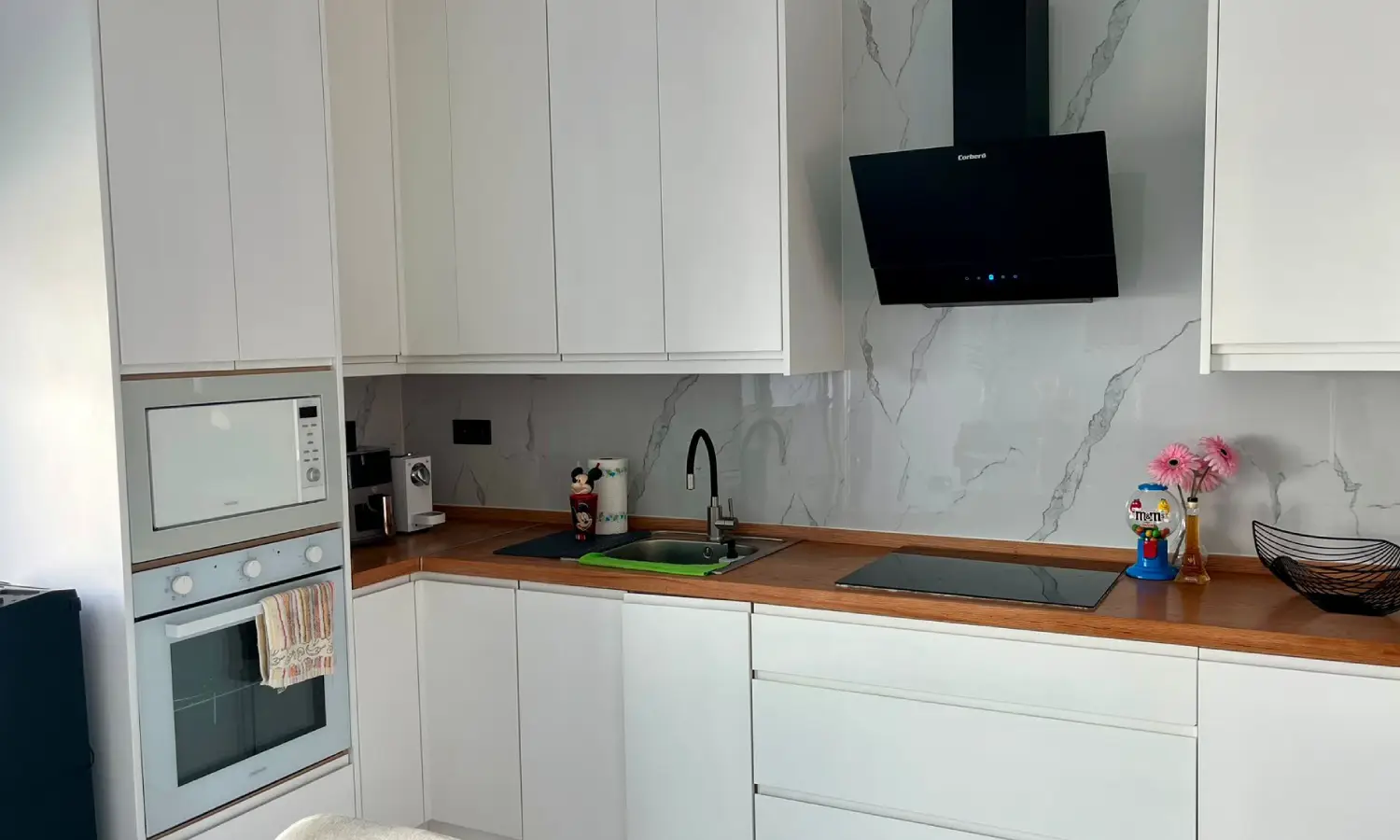La cocina abierta tipo loft, equipada con electrodomésticos de alta gama, es perfecta para los amantes de la gastronomía.