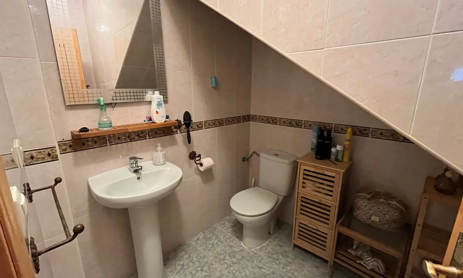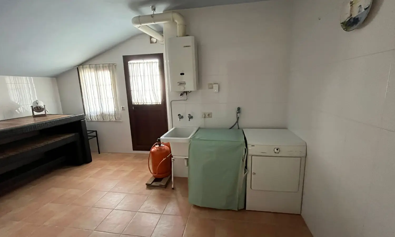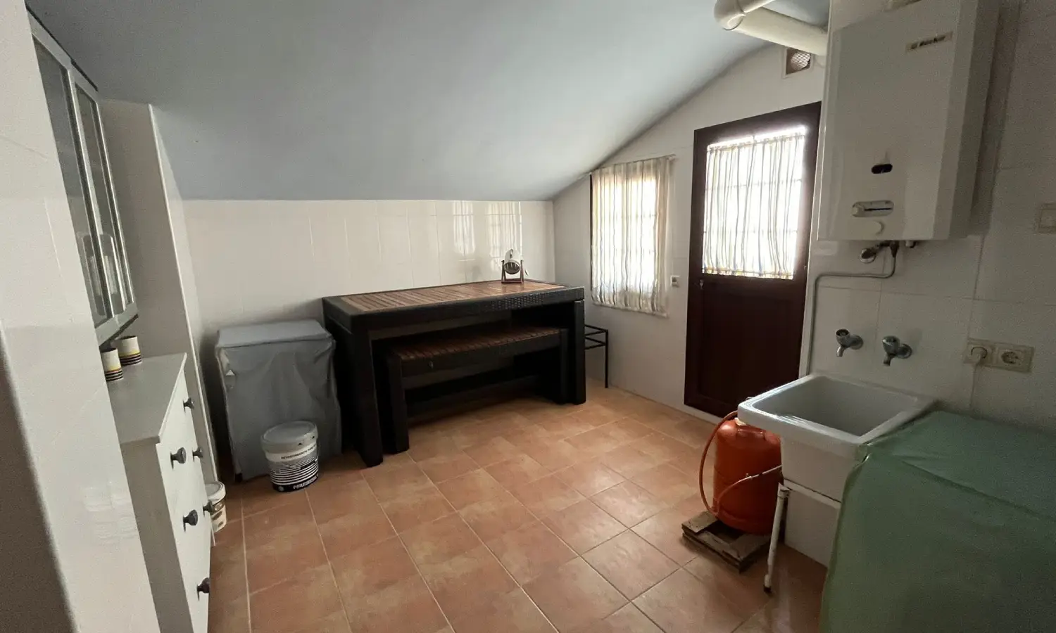 También dispone de un lavadero amplio que añade funcionalidad al espacio. En la planta superior, encontrarás tres cómodos dormitorios, todos con aire acondicionado, y un cuarto de baño completo con bañera, junto a un aseo adicional.